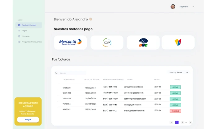 Plataforma web que permite a tus clientes gestionar y reportar sus pagos de forma autónoma y segura.