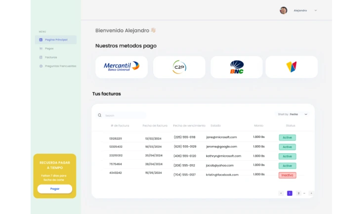 Plataforma web que permite a tus clientes gestionar y reportar sus pagos de forma autónoma y segura.